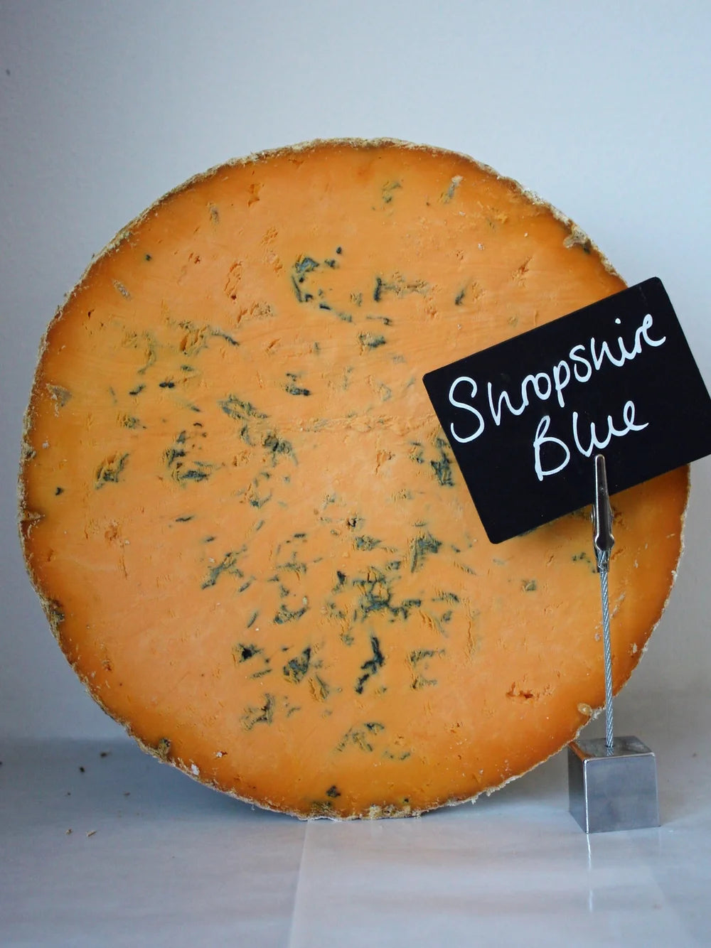 UK's only raw milk Shropshire Blue. It is made using the same recipe as the Sparkenhoe Blue, with the addition of annatto. The annatto give the cheese its beautiful rich colour which looks glorious next to the deep blue veins. The end result is a buttery, mellow blue flavour with a gentle spice to finish.